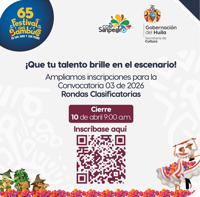 Convocatoria 03 de 2026 – Rondas clasificatorias. Patrococinado 🎶 ¡Aún estás a tiempo de participar!Inscripciones abiertas hasta el 10 de abril, 9:00 a.m.